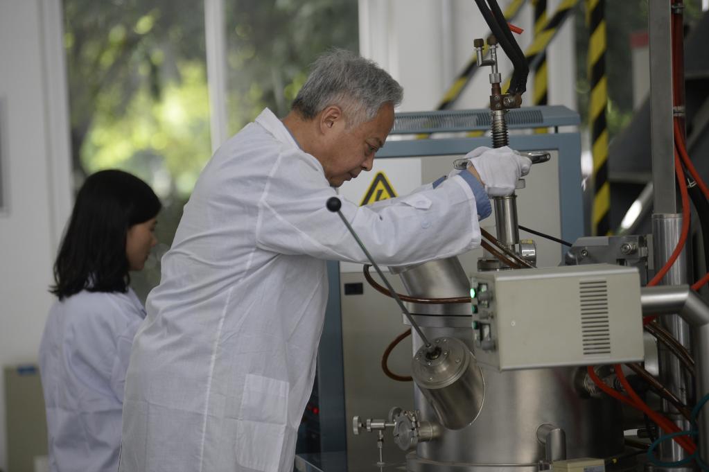5月24日,赵文金在展示N36新型锆合金包壳管样品。新华社记者 刘坤 摄