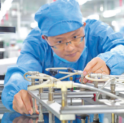 中山首位特级技师黄广鹏正在进行生产线模块调试。颜敏斯摄(人民视觉)