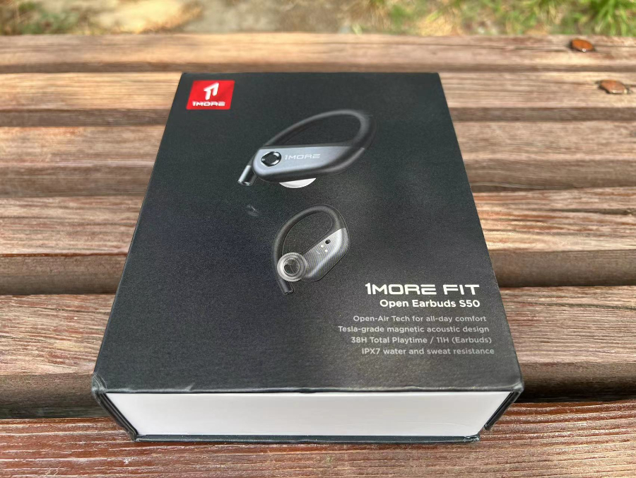 外观上,1MORE S50的包装非常精致,从侧面打开包装,两只耳机和耳机盒一眼映入眼帘,耳机盒和耳机上都有专属的1MORE标志,精致简洁。因为针对热爱运动的人群采用耳挂式,所以1MORE S50的尺寸会比传统的无线蓝牙耳机更大,也更重一些,总重量82.5克,但整体来说并没有负担,无论是放在包中还是放在兜里都不会很突兀。