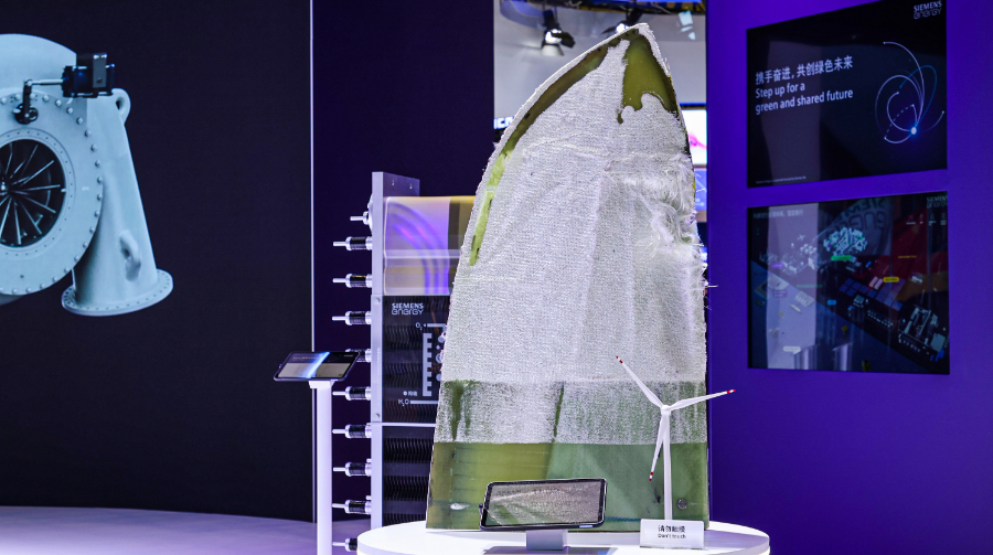 在此次展会上,西门子能源以“携手奋进,共创绿色未来”为主题,全面展示了一系列前沿低碳和创新技术。这些技术涵盖了从245千伏/72.5千伏真空灭弧室、二氧化碳捕集利用与封存(CCUS)应用,到可回收风机叶片等多个领域。