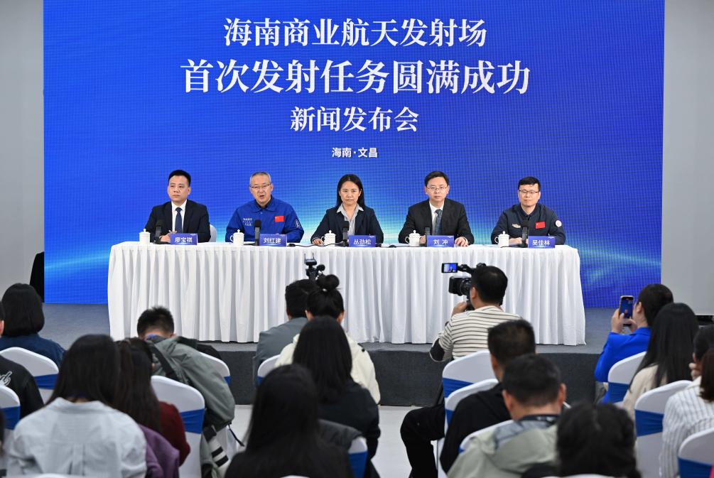 这是11月30日拍摄的海南商业航天发射场首次发射任务圆满成功新闻发布会现场。新华社记者 郭程 摄