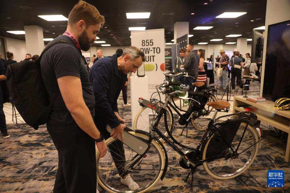 3月8日,在美国得克萨斯州奥斯汀举行的“西南偏南”大会和艺术节创新奖入围作品展示会上,参展人员向参观者演示一种电动自行车改装套件。新华社记者 徐剑梅 摄