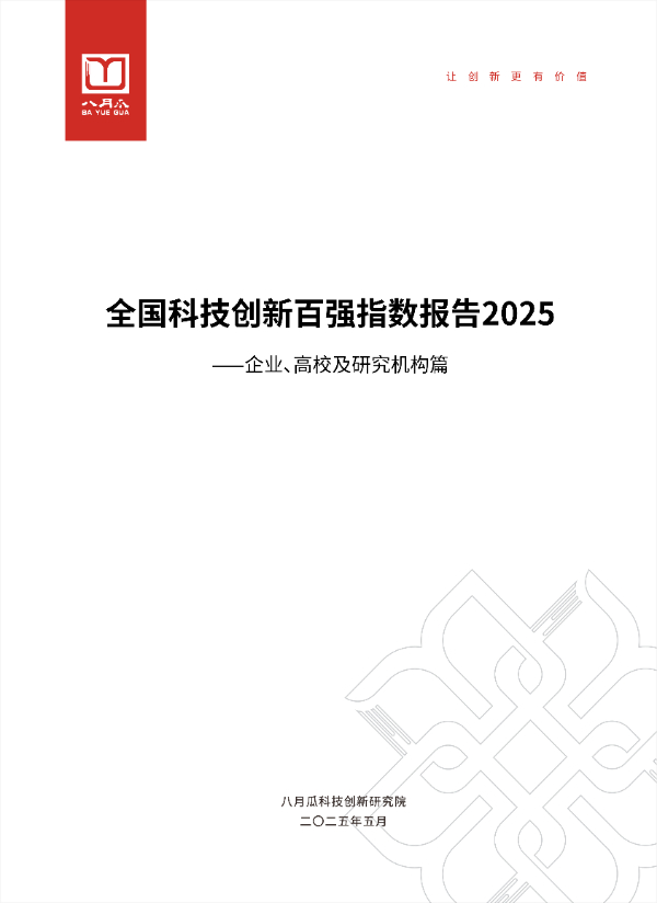 新华网北京5月30日电(记者 周靖杰)5月30日,国内数智化研究机构八月瓜科技创新研究院在京举办《全国科技创新百强指数报告2025》媒体发布会,会上正式发布《全国科技创新百强指数报告2025(企业、高校及研究机构篇)》(以下简称《报告》)。