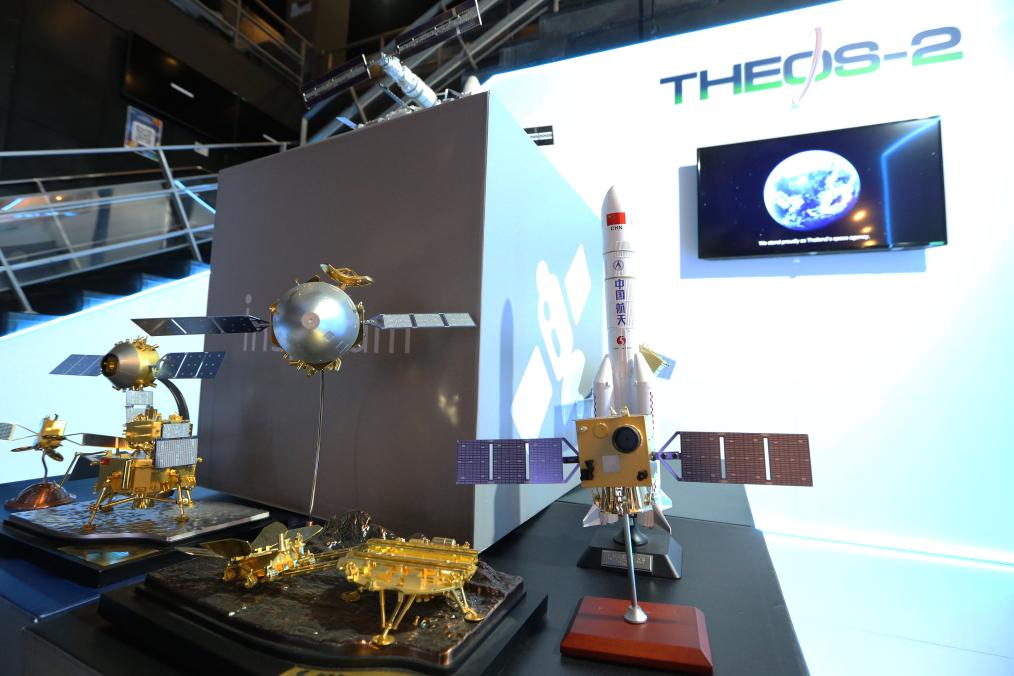 这是2025年4月8日在位于泰国是拉差县的泰国地理信息学与太空技术发展局拍摄的展出的部分航天模型。新华社发(拉亨摄)
