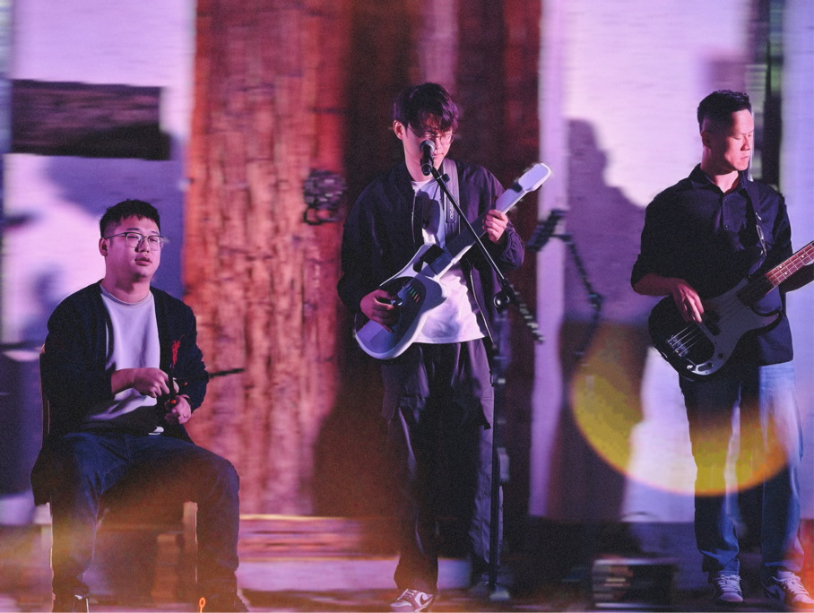 在乌镇的AI音乐秀现场,除了有专业的乐手带来表演,观众也被邀请上台体验。一位毫无音乐基础的“小白”,跟随吉他琴弦上流动的追光指引,像玩一场音乐游戏般弹奏出流畅的乐章;在濮院时尚古镇的舞台上,观众则对着手机随意哼唱了一段旋律,这段旋律便被AI谱写成完整的曲目,并导入智能吉他中,让他当即演奏出了一首属于自己的“原创歌曲”。