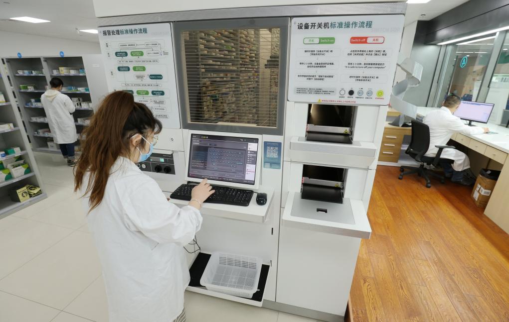 浙江德清县第三人民医院药师在操作发药机器人。新华社发(谢尚国摄)