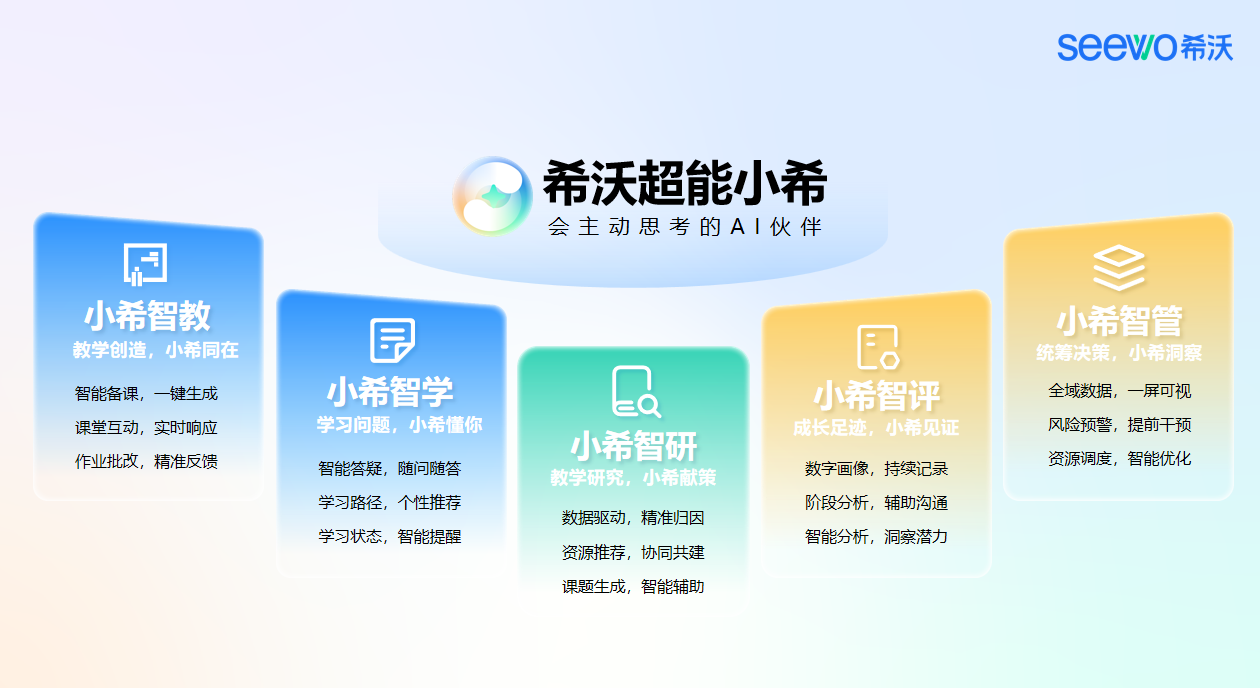 这一理念与上海正在发生的“智能体集群”教育变革高度同频。“希沃超能小希”并非单一应用,而是演化出与教学全流程深度耦合的五个智能体,形成了系统化的“外脑”支持矩阵: