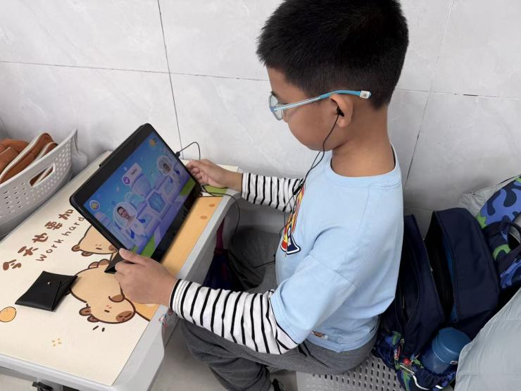 中关村第二小学万泉河分校学生上“爱学”AI英语课