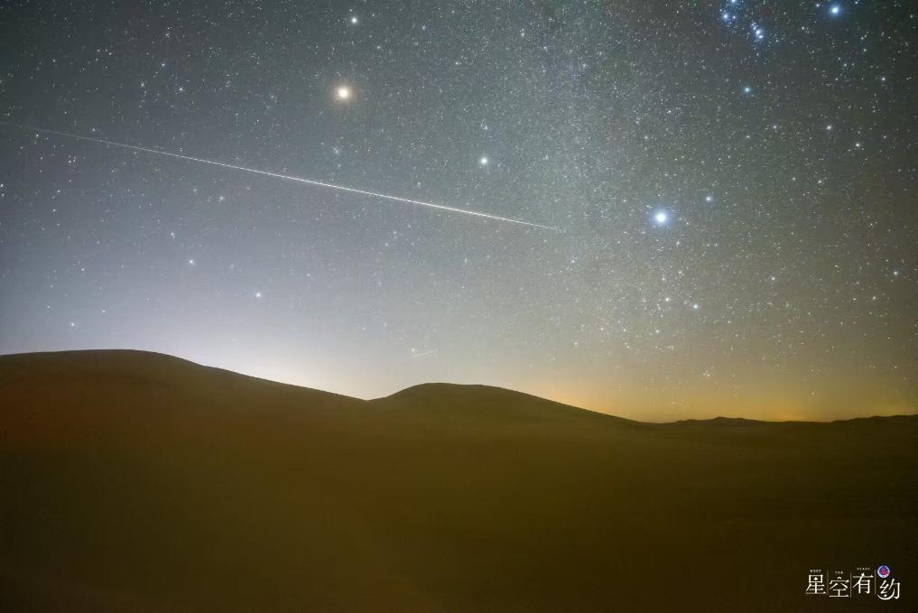 2025年1月4日,在内蒙古库布齐沙漠拍摄的象限仪座流星雨。(张正龙摄,星联CSVA供图)