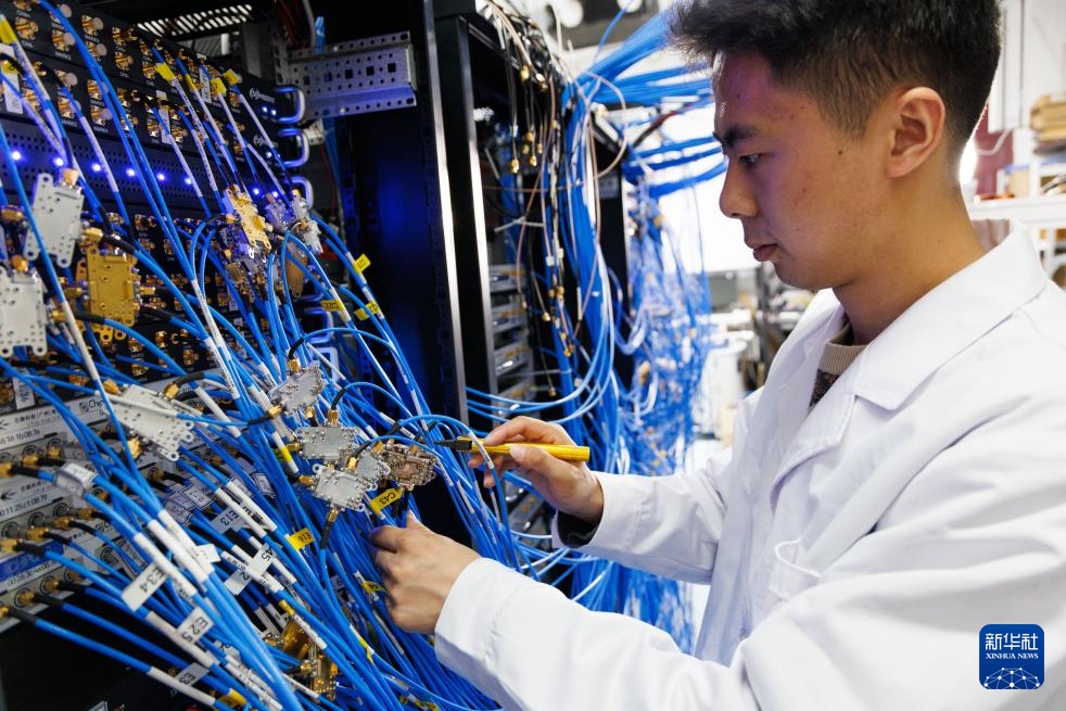 1月21日,在中国科学院物理研究所实验室,共同第一作者刘政和在操作测控接线。新华社记者 金立旺 摄