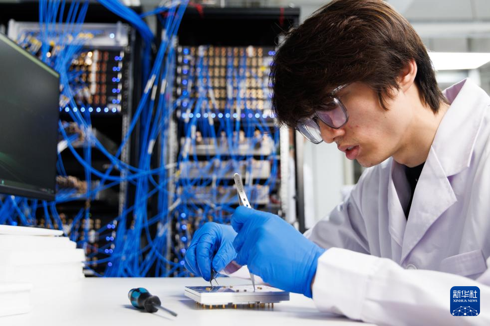 这是1月21日在中国科学院物理研究所实验室拍摄的78比特“庄子2.0”芯片。新华社记者 金立旺 摄