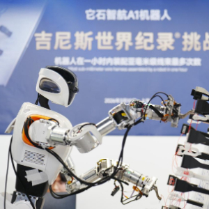 在3月12日-15日举办的AWE2026上,它石A1机器人正在挑战吉尼斯世界纪录。企业供图
