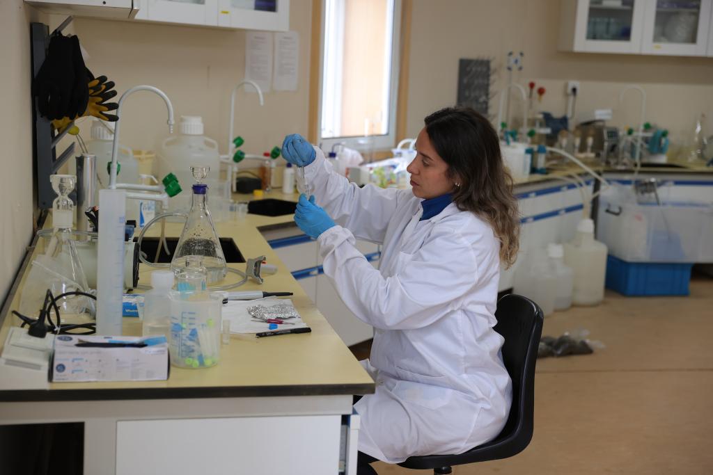2026年1月26日,葡萄牙科学家塔伊娜·丰塞卡在中国南极长城站实验室过滤采集到的海水样品。(新华社发)
