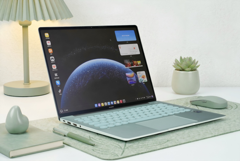 设计与便携性上,华为MateBook 14鸿蒙版金属一体化机身,薄至14.5mm,方键盘版本轻约1.32kg,圆键盘版本轻约1.33kg,便于携带。机身设有鸿蒙智徽专属标识,采用波点艺术键盘,D壳配备近5000个波点进风孔,兼顾美学与散热。产品提供原野绿、樱粉金、深空灰等配色,经高温高湿等严苛环境测试,保障长期稳定运行。