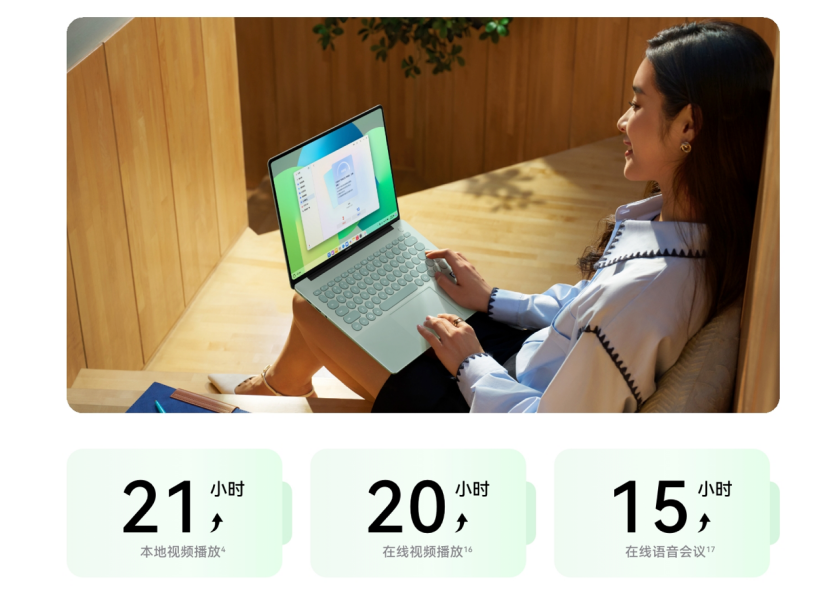 续航与散热方面,华为MateBook 14鸿蒙版配备70Wh额定容量电池,数据显示,可支持本地1080P视频播放约21小时、爱奇艺视频播放约20小时、腾讯语音会议约15小时。设备采用鲨鱼鳍双风扇散热系统,搭配大直径热管与主板小型化设计,提升散热效率,降低运行噪音。此外,产品支持关机状态下至高66W反向充电,可为手机、平板等设备应急补能。