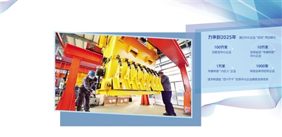 工业和信息化部中小企业局局长梁志峰表示,力争到2025年,通过中小企业“双创”带动孵化100万家创新型中小企业,培育10万家省级“专精特新”中小企业,1万家专精特新“小巨人”企业,1000家制造业单项冠军企业,逐步构建起“百十万千”的优质中小企业梯度培育体系。