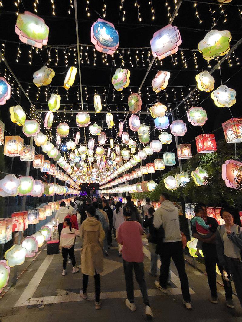 “双节”假期的北京世界花卉大观园灯会现场客流密集,夜幕未降,现场便已被人流的热闹气息“点亮”。南门停车场早早就排起了等候入场的长队,入口处检票通道前人流不断,不少游客携家带口前来。