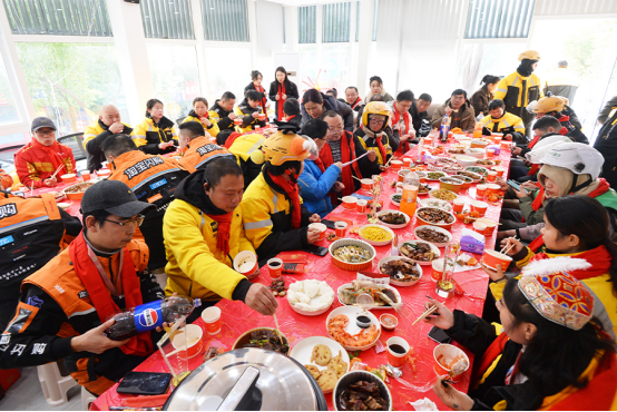 活动尾声,工作人员为每位“小哥”送上了装有春联、福字、保暖手套及干粮的“暖冬礼包”。热气腾腾的团圆饭,笑语盈盈的相聚场景,让这座城市的“奔跑者”们在寒冬里倍感温暖。(陈周璇)