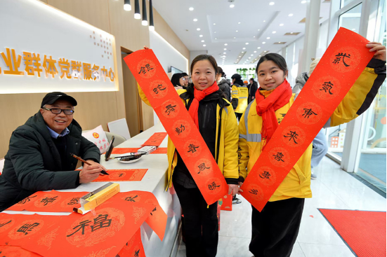 武汉市首个区级新就业群体党群服务中心2月10日在汉阳区汇福园社区正式揭牌启用。当天,一场特别的“团年饭”在这里温馨开席,40余名平日里奔忙于城市街巷的快递员、外卖员、网约车司机等新就业群体代表欢聚一堂,逛年味集市、品暖心家宴、享贴心服务,在专属的新春庆典中感受城市温情。