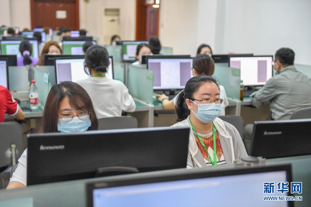 6月16日吉林省2021年高考阅卷工作向媒体开放,接受社会监督。2021年吉林省高考阅卷工作全部采用电子扫描、网上阅卷方式进行。图为工作人员在东北师范大学阅卷。(新华社记者 张楠 摄)