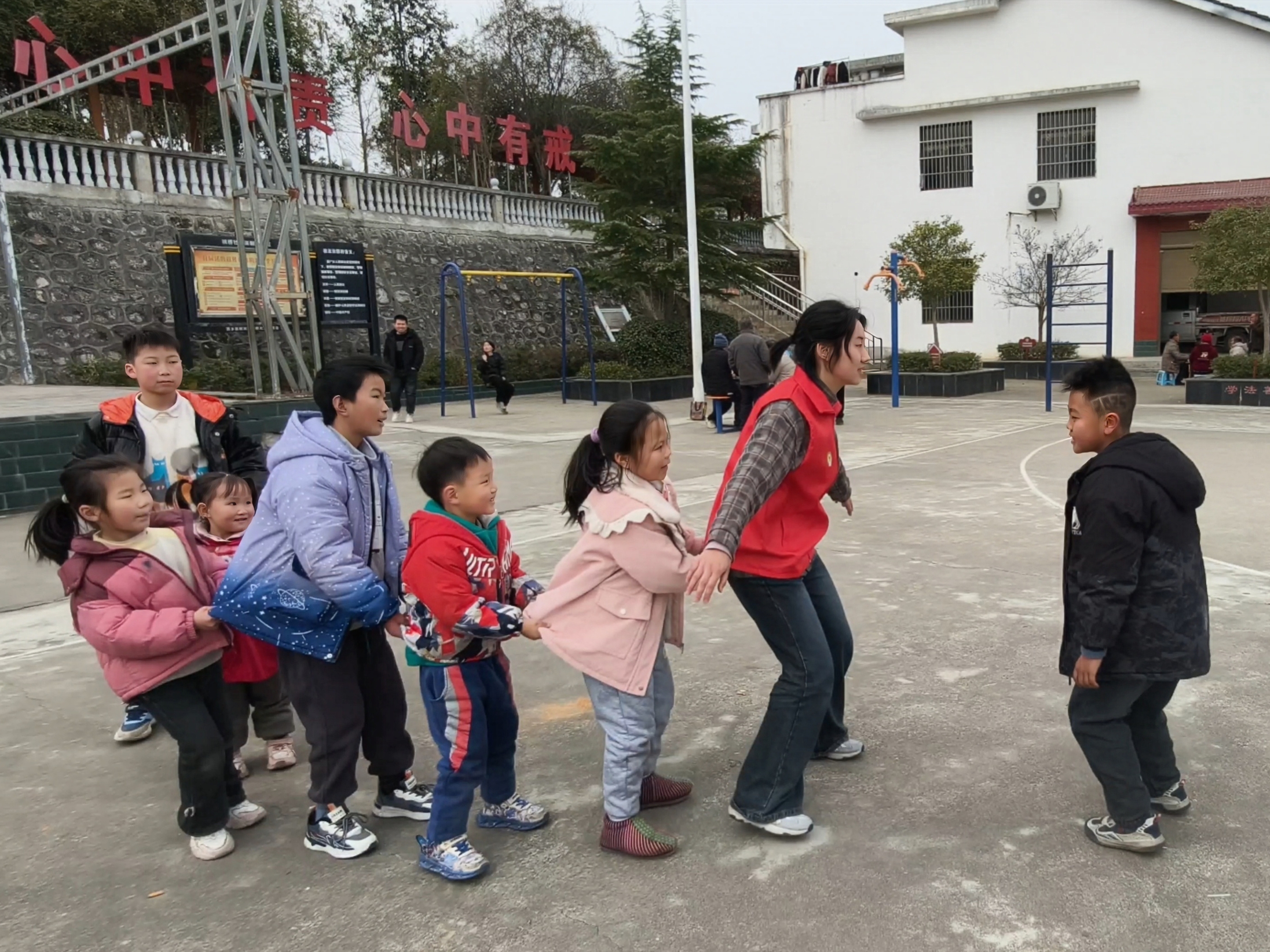 1月13日至16日,陕西省汉中市西乡县杨河镇拱桥社区,中央司法警官学院志愿者黄曼怡与七名家乡儿童一同开展体育活动和趣味游戏,孩子们在运动中锻炼了身体,也更加明白团队协作的重要性。