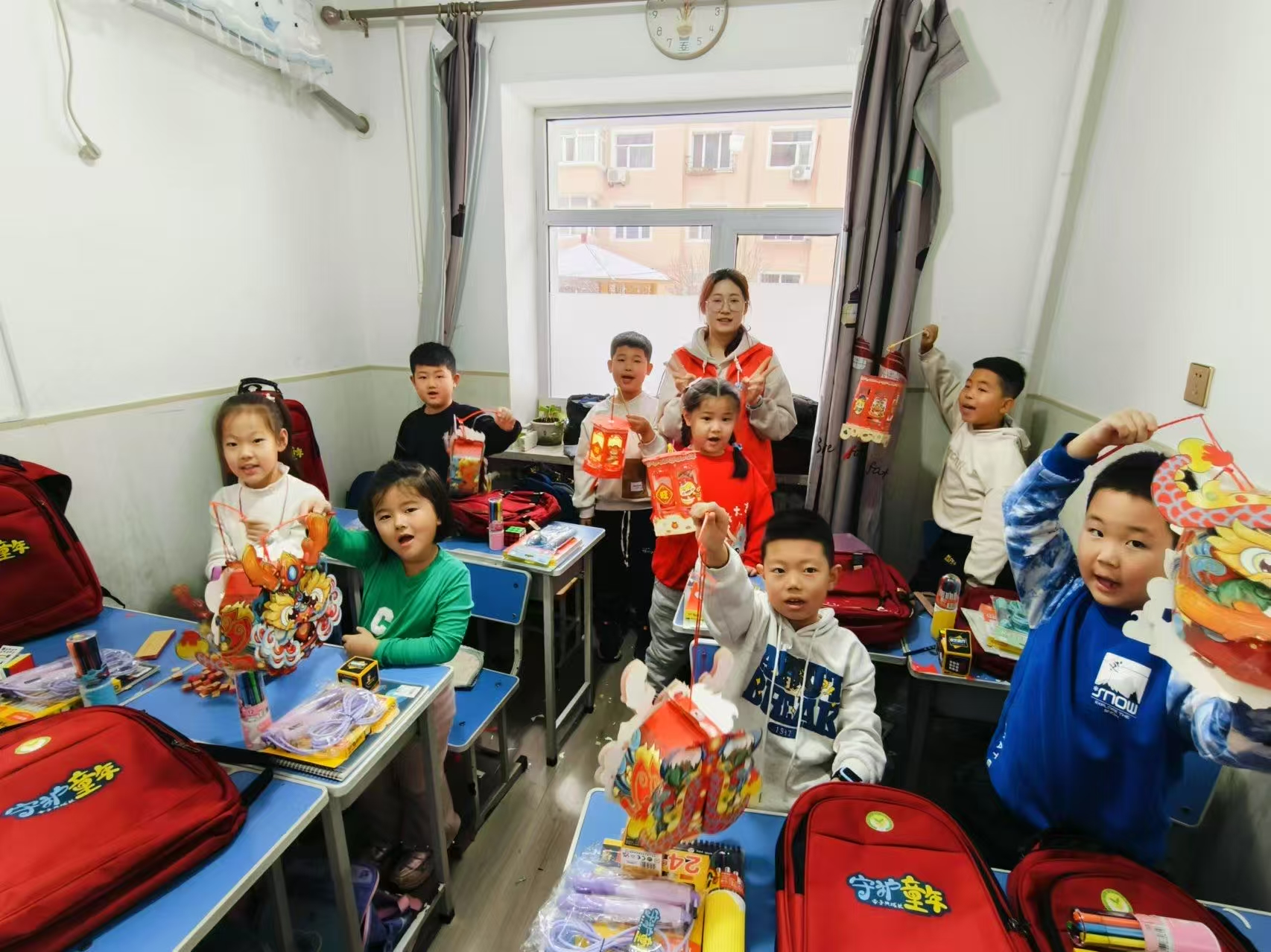 1月13日,黑龙江省哈尔滨市平房区新疆大街新志社区,黑龙江大学志愿者张钊团队与8名家乡儿童一起猜灯谜,做灯笼。灯笼制作从挑选材料、设计形状到最后的装饰,每一步都凝聚了孩子们的努力和创意,看着灯笼被最终点亮,孩子们感到无比自豪和满足。