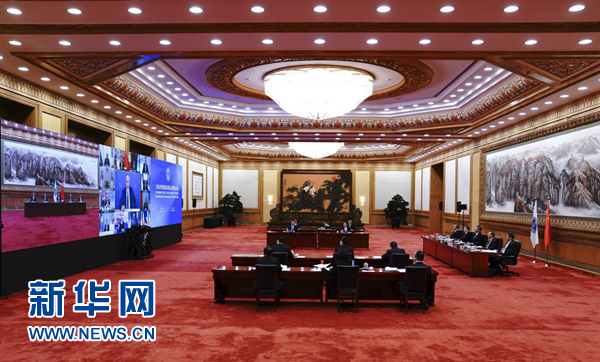 11月10日晚,国家主席习近平在北京以视频方式出席上海合作组织成员国元首理事会第二十次会议并发表重要讲话。 新华社记者 李学仁 摄