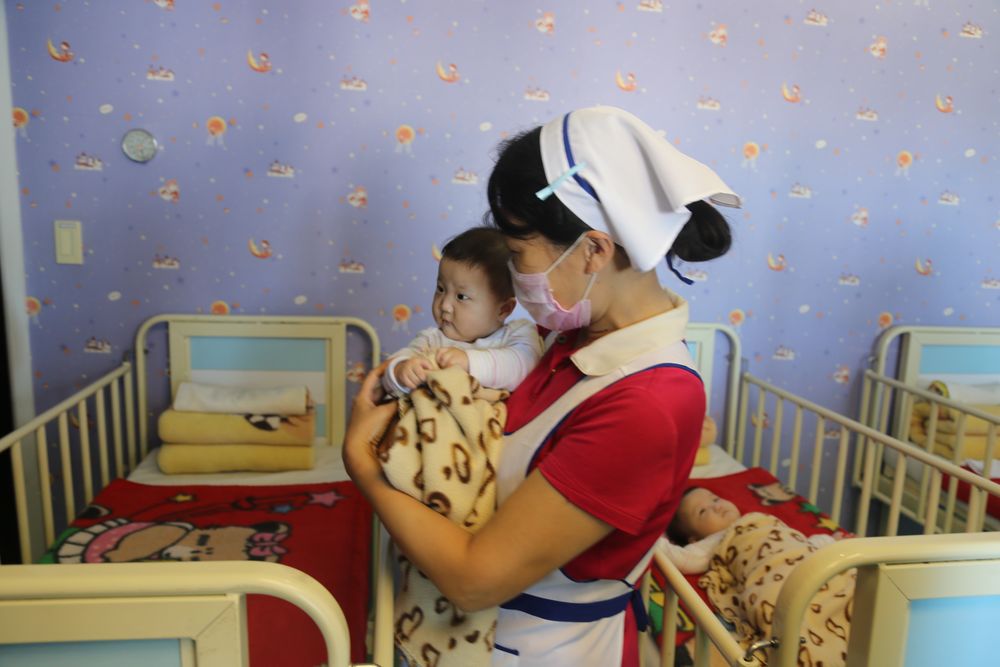 平壤育幼院院长崔正实介绍,育幼院负责抚养100余名4岁以下婴幼儿,其中有9对三胞胎。朝鲜对三胞胎婴儿给予特别关照。只要父母同意,婴儿出生后可直接送到育幼院抚养,一切费用由国家承担。