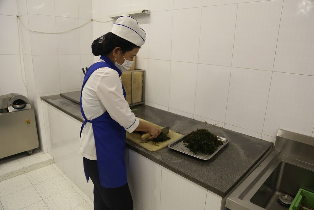 9月1日,朝鲜平壤育幼院和保育院的工作人员在为孩子们烹饪午餐。新华社记者洪可润摄