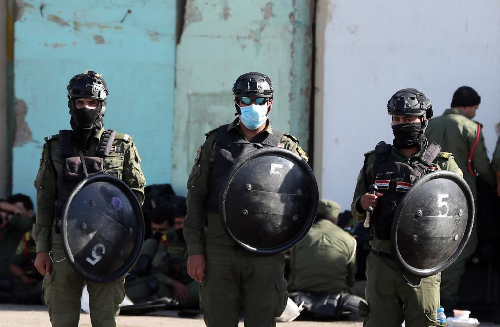 11月7日,防暴警察在伊拉克巴格达“绿区”附近警戒。新华社发(哈利勒·达伍德摄)