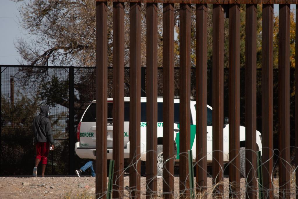 12月7日在墨西哥华雷斯城拍摄的照片显示,试图翻越边境墙进入美国的移民被美国边境执法人员拦截。新华社发(戴维·佩纳多摄)