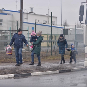 2月24日,来自顿巴斯地区的难民通过一处边境检查站进入俄罗斯罗斯托夫州。新华社发(安德烈摄)