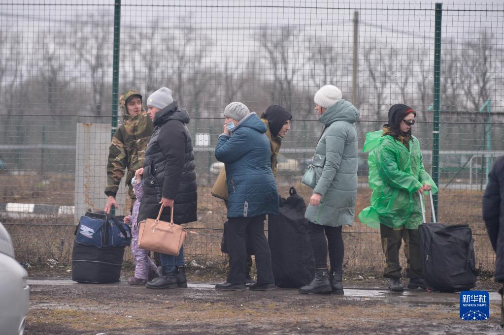 2月24日,来自顿巴斯地区的难民通过一处边境检查站进入俄罗斯罗斯托夫州。新华社发(安德烈摄)