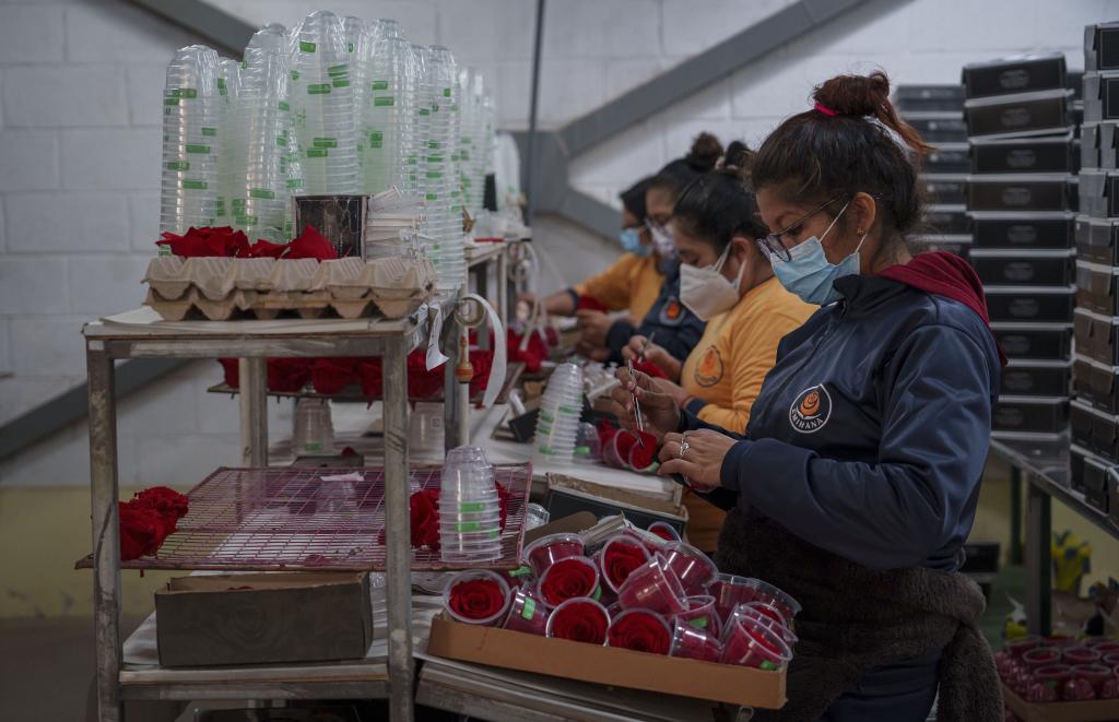 3月18日,工作人员在位于厄瓜多尔卡扬贝市的埃米阿娜公司包装玫瑰。新华社发(圣地亚哥·阿马斯摄)