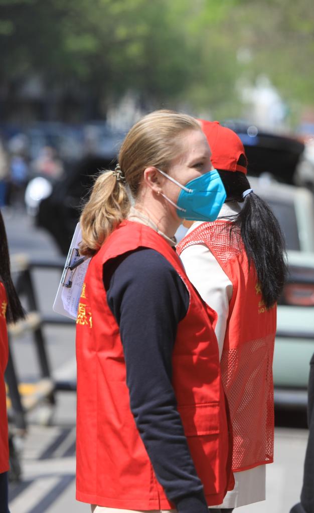太原4月初发生新冠肺炎疫情后,当社区群里招募志愿者时,伊丽娜主动申请,成为并三社区的一名志愿者,在绿色通道引导老人和孩子做核酸检测。