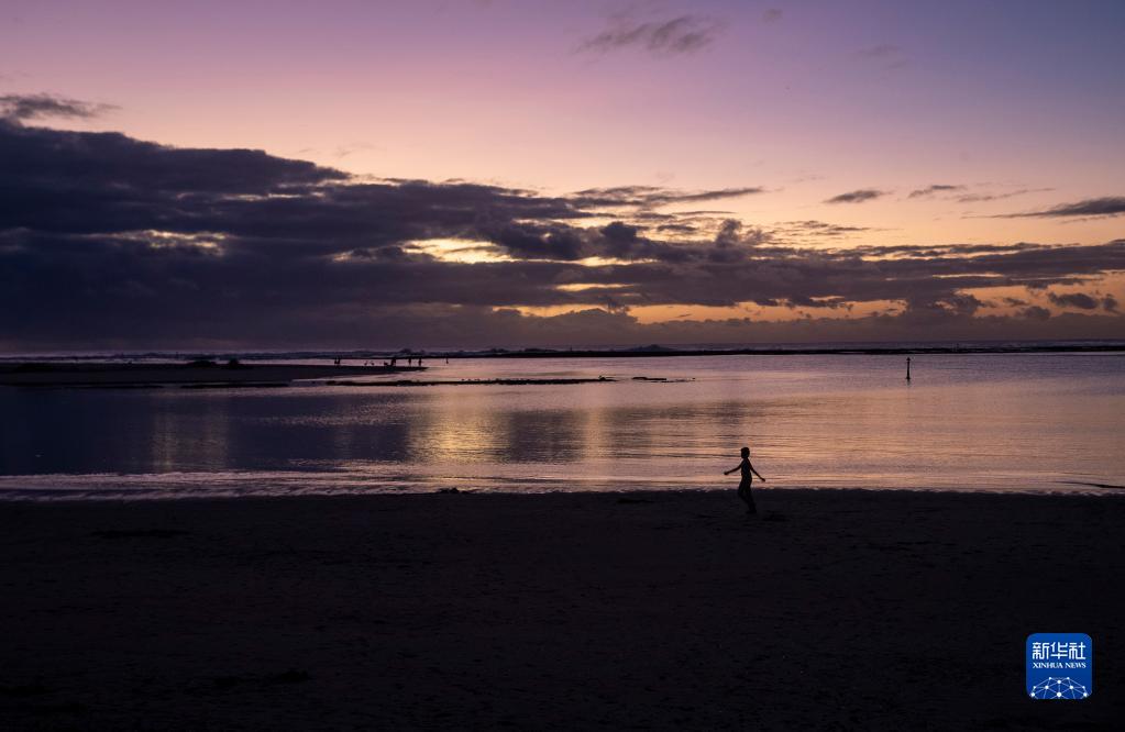这是6月13日在澳大利亚西澳大利亚州朱里恩湾拍摄的海滨晚霞。