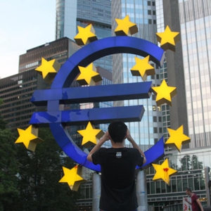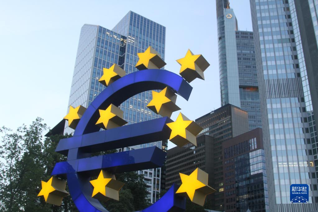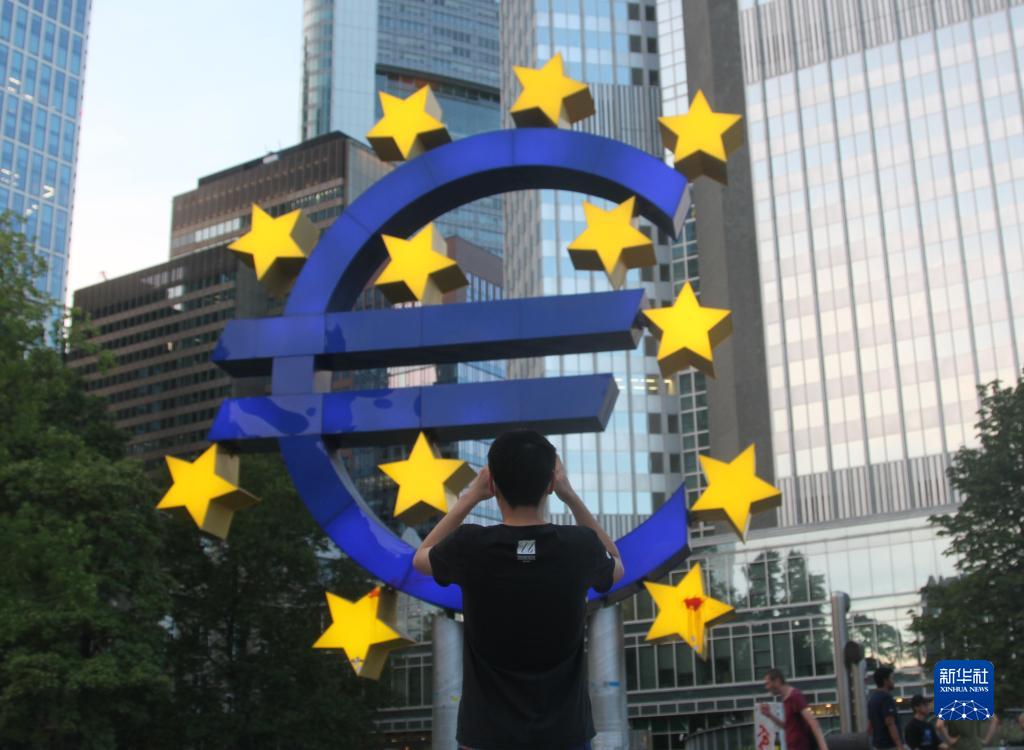 这是7月12日在德国法兰克福拍摄的欧元雕塑。新华社记者单玮怡摄