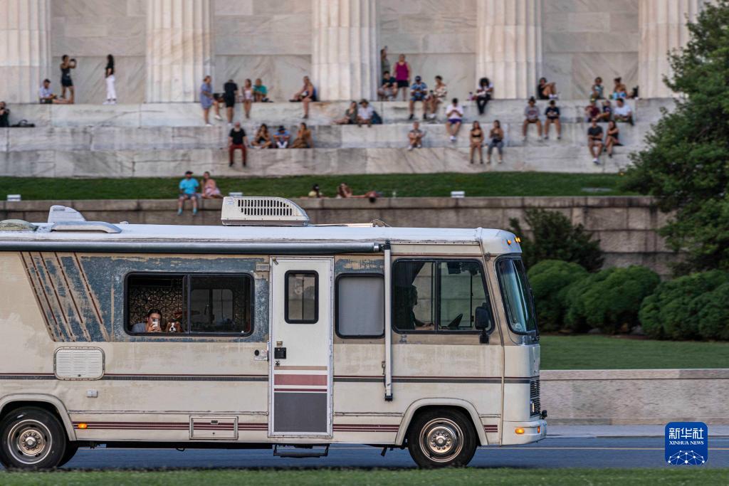 7月24日,在美国首都华盛顿,一辆房车从林肯纪念堂前经过。