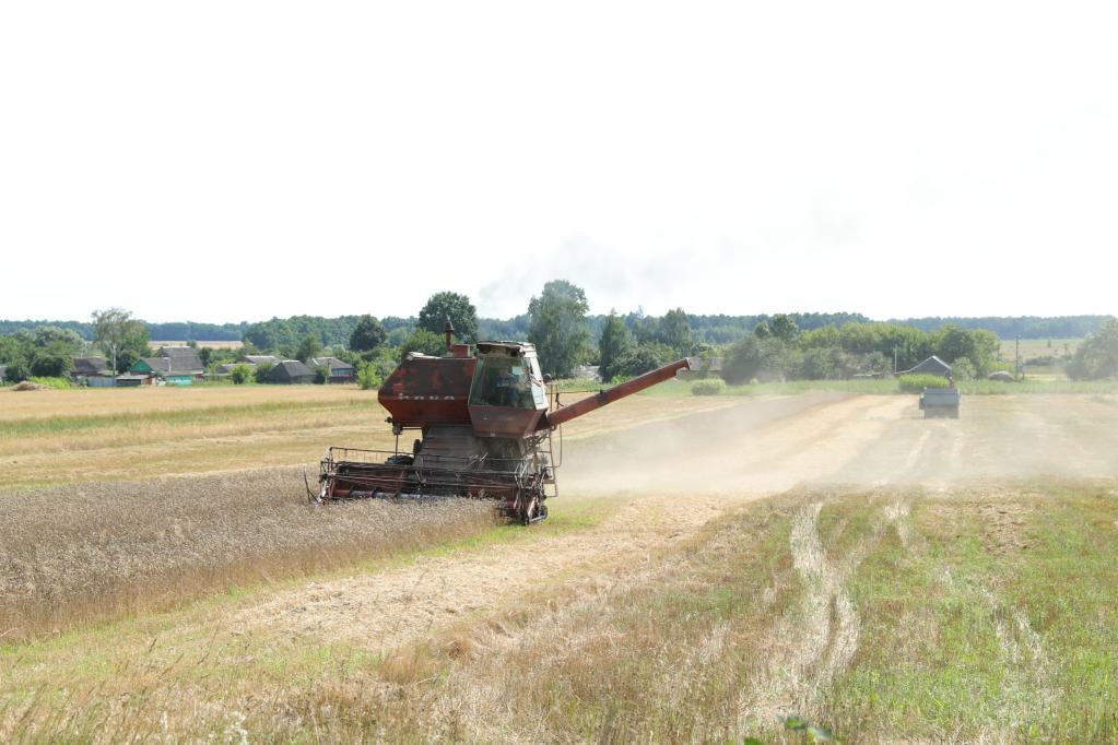 7月30日,收割机在乌克兰切尔尼戈夫州一座农场收割麦子。新华社记者李东旭摄