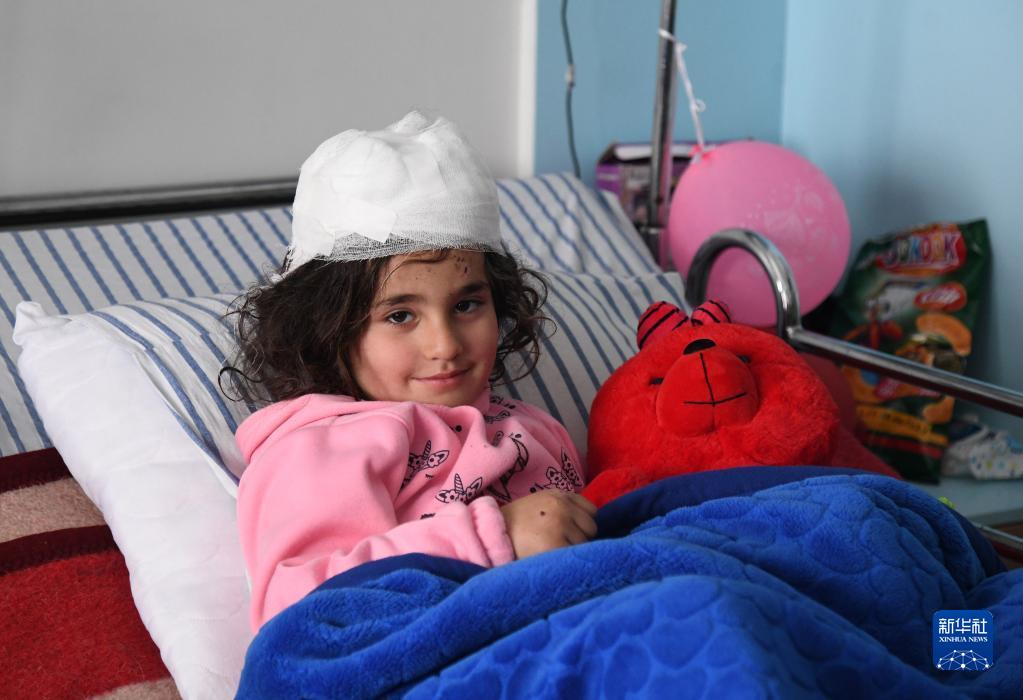 2月17日,在叙利亚阿勒颇省首府阿勒颇市,一名在地震中受伤的女孩在医院接受治疗。