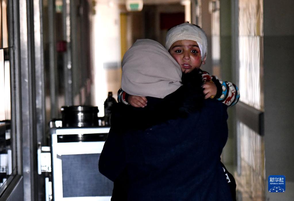 2月17日,在叙利亚阿勒颇省首府阿勒颇市,一名在地震中受伤的儿童在医院接受治疗。