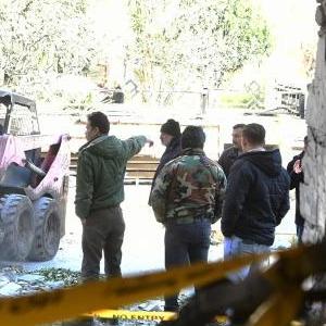 这是2月19日在叙利亚大马士革拍摄的在导弹袭击中受损的车辆。
