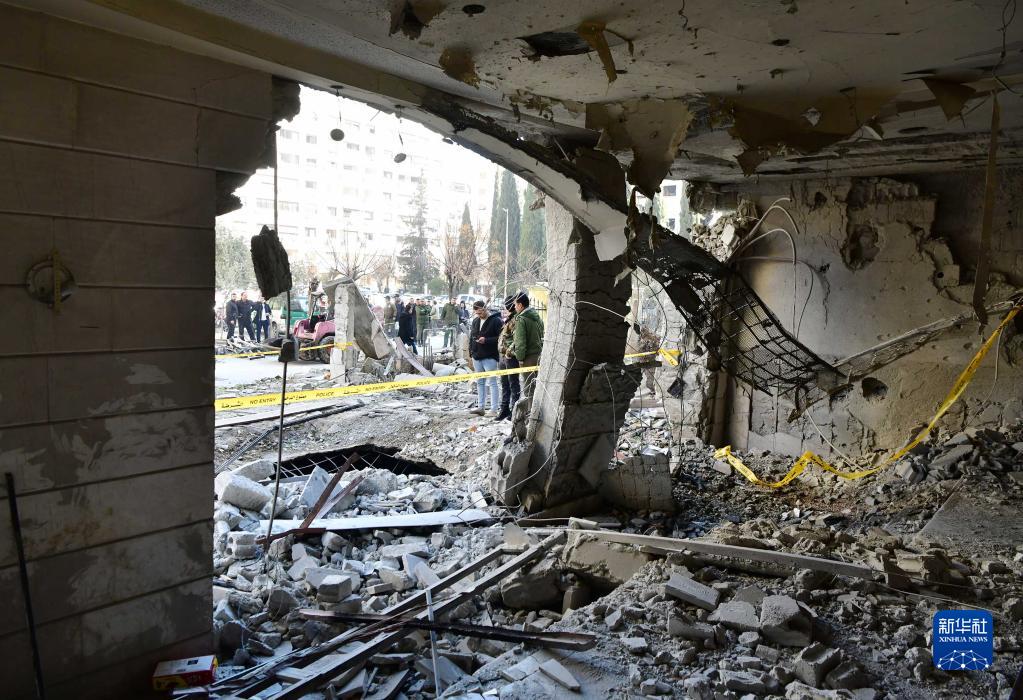 这是2月19日在叙利亚大马士革拍摄的在导弹袭击中受损的建筑。