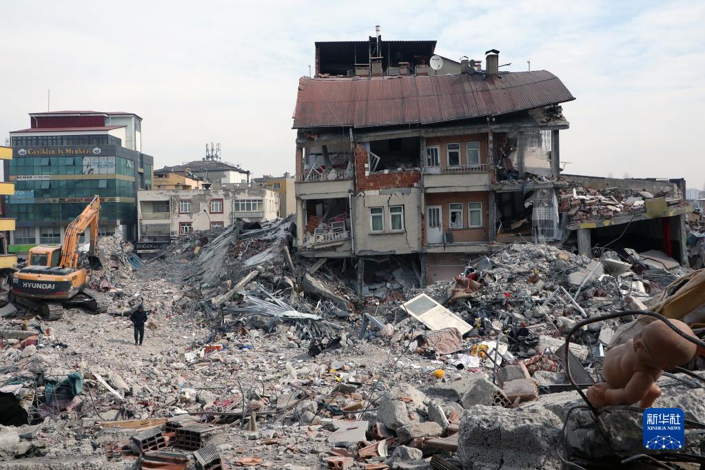 这是2月19日在土耳其南部卡赫拉曼马拉什省卡赫拉曼马拉什市拍摄的震后景象。