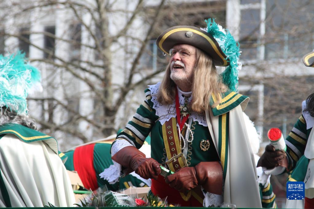 2月20日,在德国科隆,狂欢者参加“玫瑰星期一”游行。