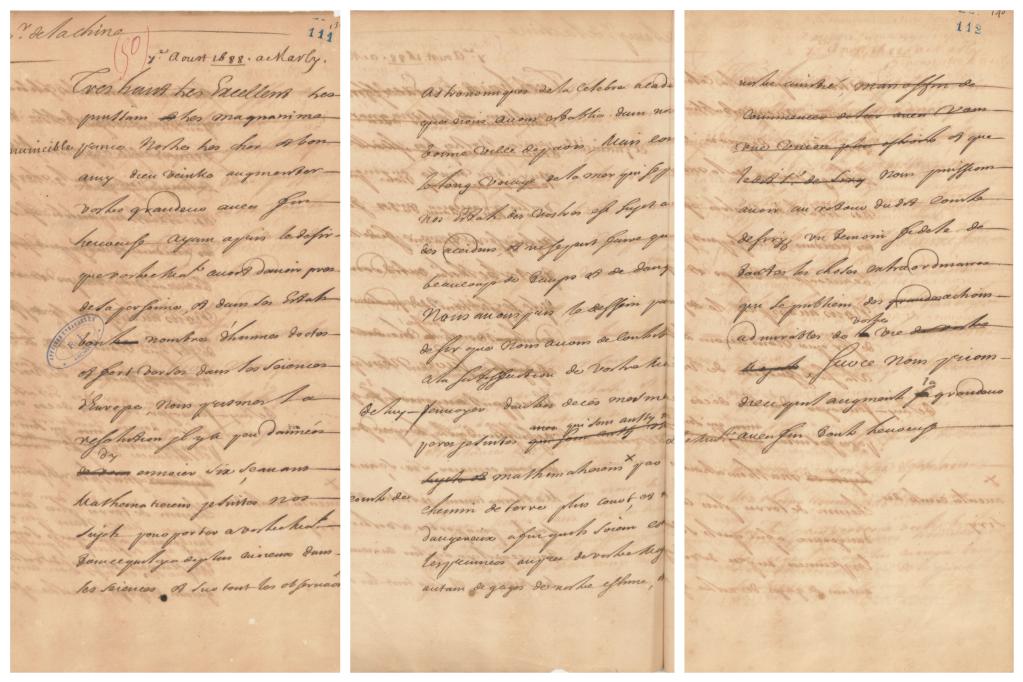 法国国王路易十四写给中国皇帝康熙的亲笔信。(法国外交部档案馆资料图片)