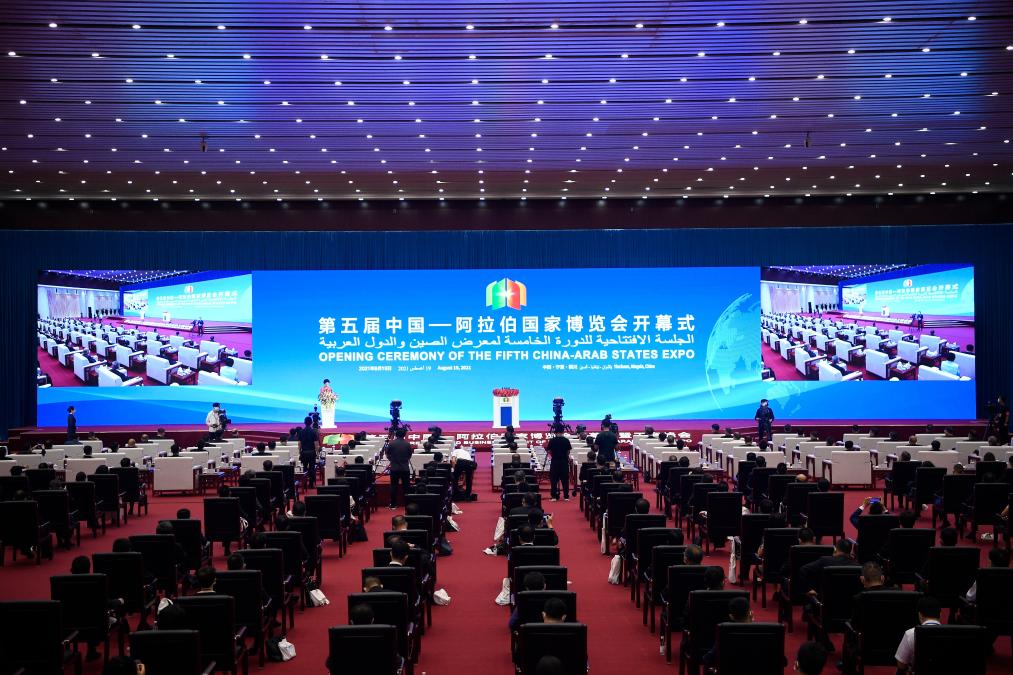 2021年8月19日,第五届中国-阿拉伯国家博览会在宁夏银川市开幕,中外嘉宾线上线下共谋经贸合作与发展。新华社记者王鹏摄