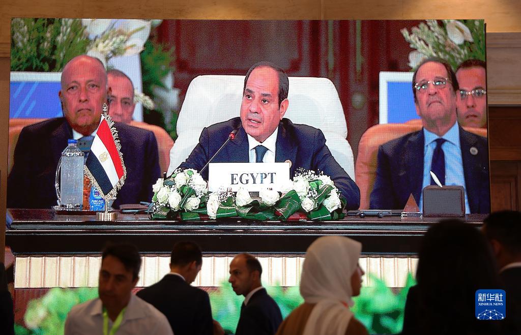埃及总统塞西在峰会开幕致辞中说,埃方拒绝将巴勒斯坦人驱逐到埃及土地上,解决巴勒斯坦问题的唯一办法是赋予巴勒斯坦人合法生活在独立国家的权利。他呼吁国际社会共同努力,制定恢复中东和平进程的路线图,结束当前的人道主义悲剧。