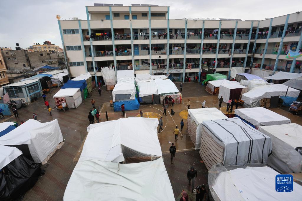 这是11月15日拍摄的位于加沙地带南部城市拉法一所学校内的巴勒斯坦人临时住所。