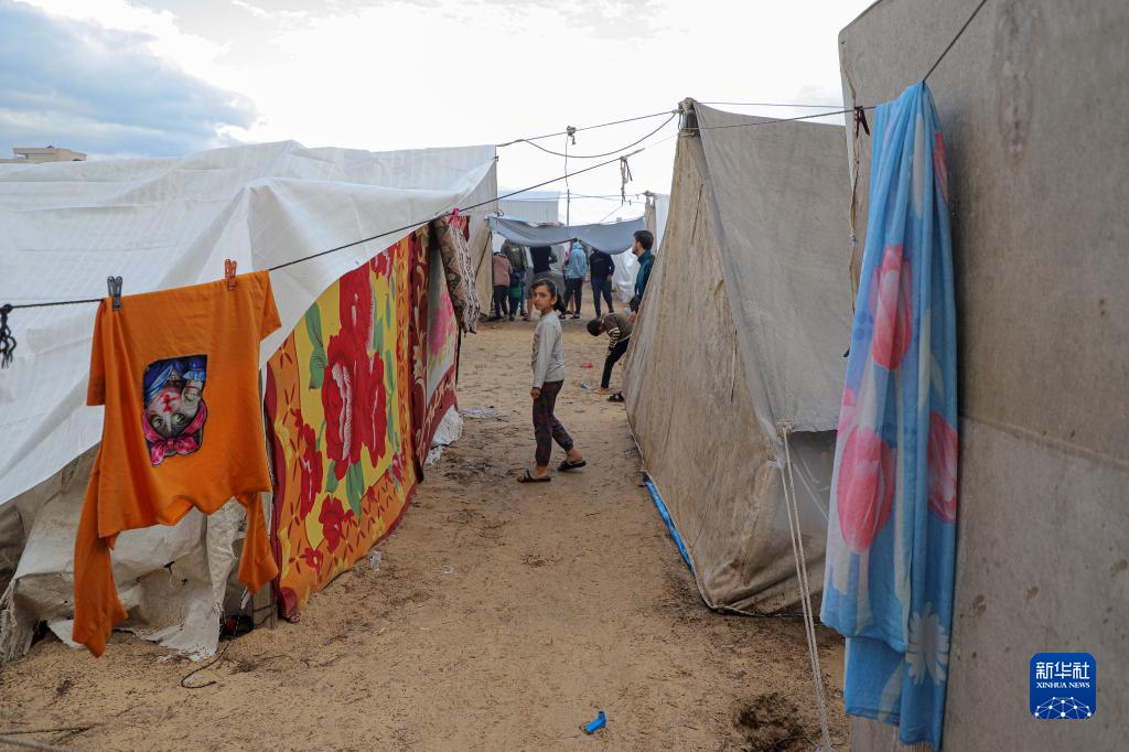 这是11月15日在加沙地带南部城市汗尤尼斯一处临时营地拍摄的巴勒斯坦儿童。